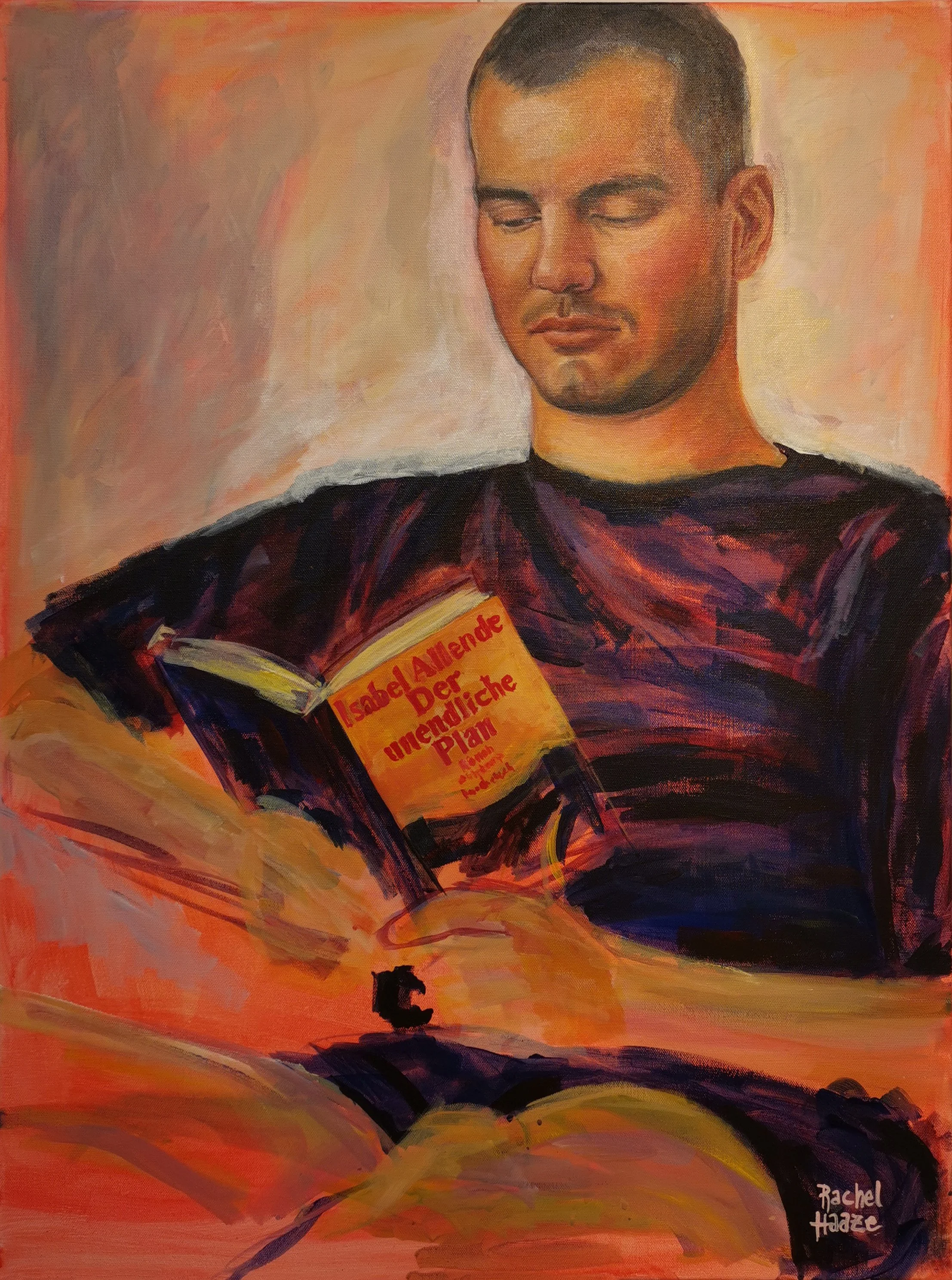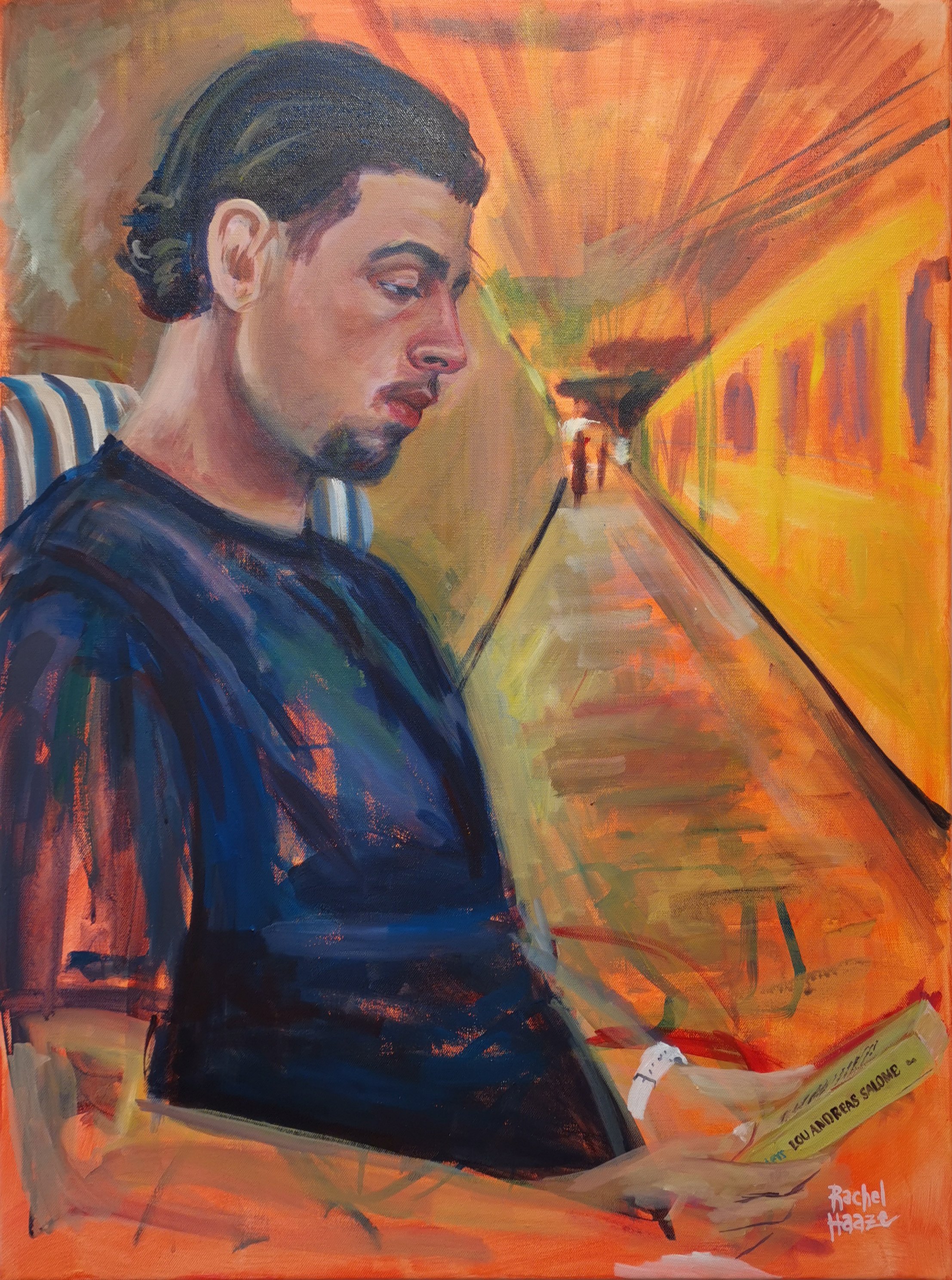 Das Projekt knüpft an die feministische Diskussion um den „Male Gaze“ an und stellt diesem einen utopischen weiblichen Blick gegenüber. Meine Darstellungen junger Männer thematisieren Begehren ohne Objektifizierung. Sie zeigen Sensibilität, Verletzlichkeit und Schönheit jenseits stereotyper Männlichkeitsbilder. In Momenten des Alleinseins inszeniert, werden die Figuren zu Projektionsflächen eines empathischen, nicht-hierarchischen Blicks. Subtile Bezüge zu Berlin bleiben auch hier in einigen der Gemälde als persönliche Erfahrungsräume spürbar.